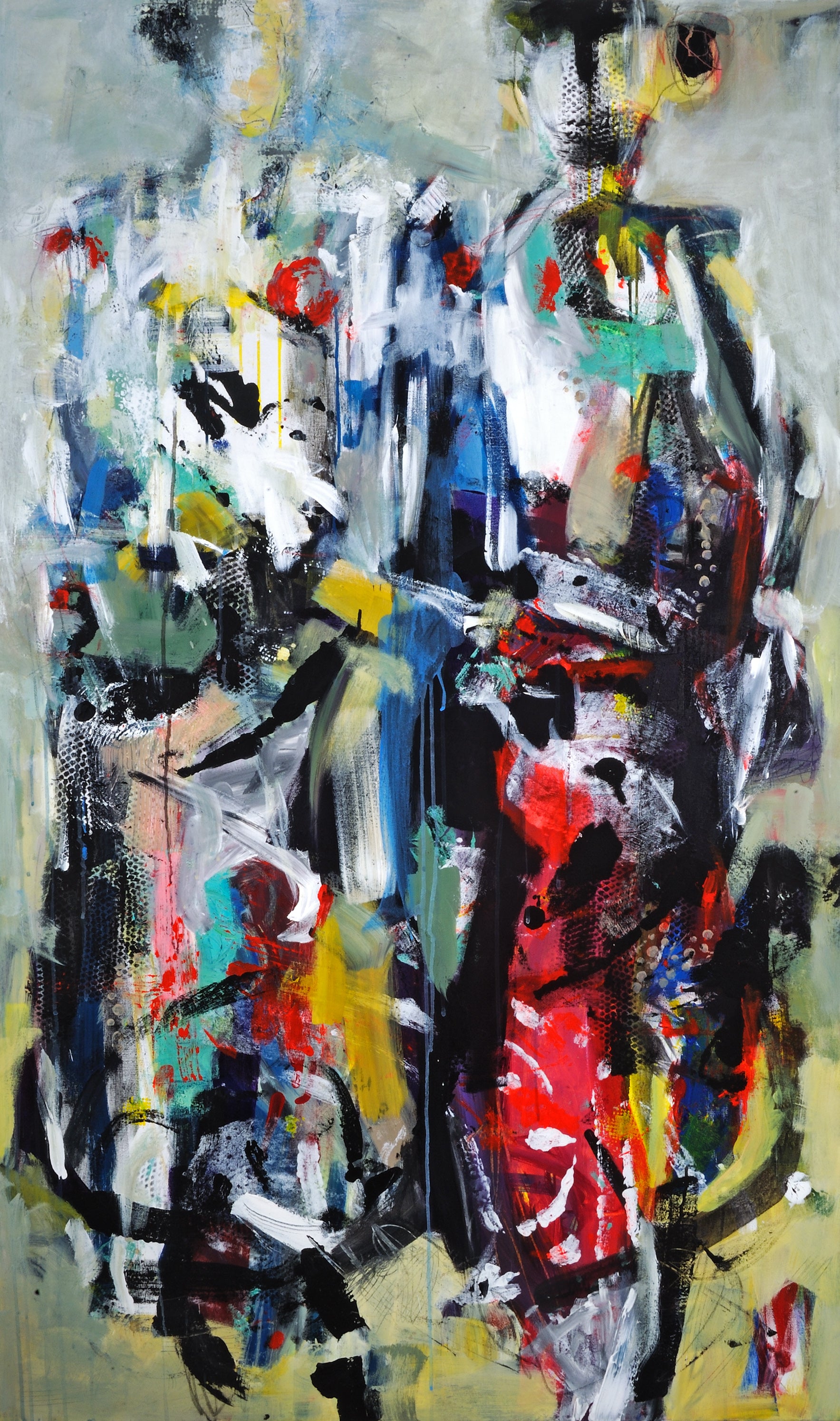 A colorful and lively abstract painting, inspired by the concept of companionship. Each brushstroke is bold and full of energy, creating a statement piece that reflects the bond between friends, lovers, and even strangers. With a touch of romance, Companeros celebrates the human connection.