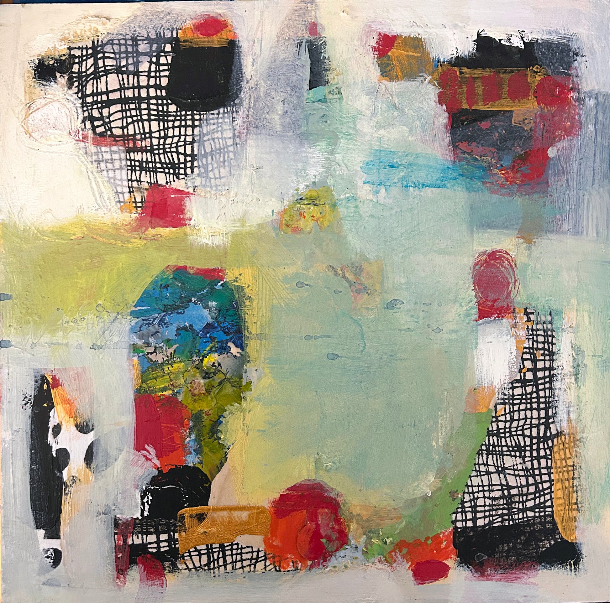 Hidden Worlds, III, acrylic and collage on cradled wood panel, 12" x 12" x 5/8"
