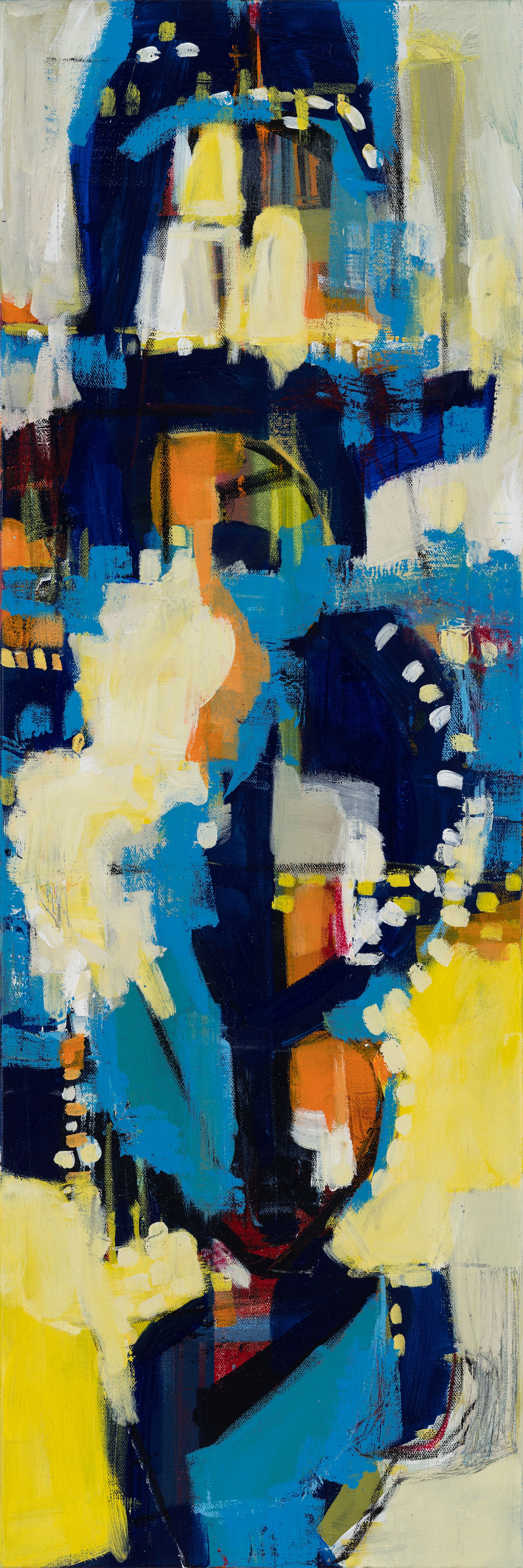 "Liquid Dreams: Chicago River Rhythms from 49 Stories" is an abstract work inspired by my view of the Chicago River at night from my apartment window. Dreamy and reflective the lights bounce off the water. Acrylic on canvas. Dimensions 12" x 36" x 2" Available as original art and giclee print.