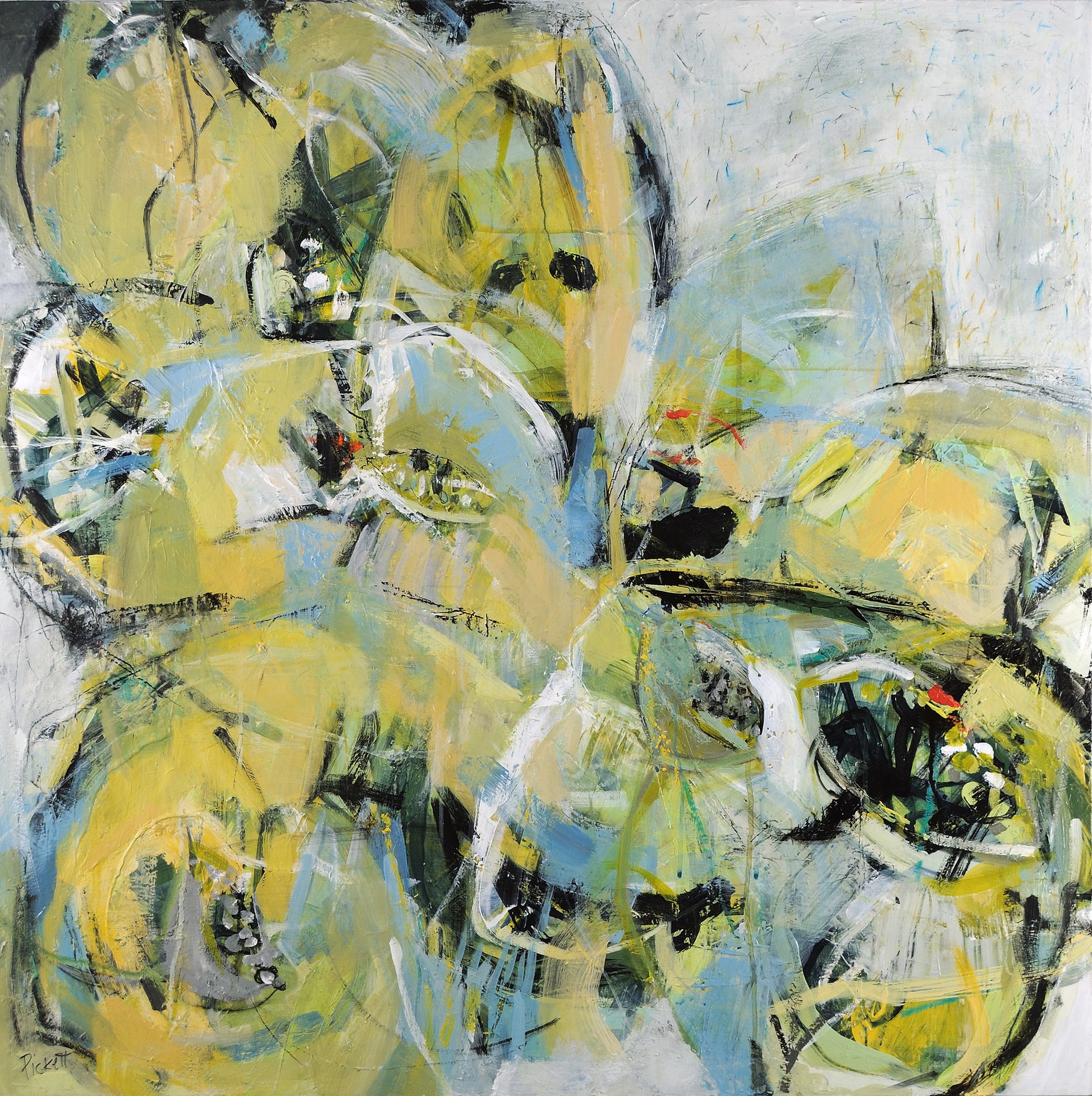 This painting is originally made in 36" x 36" dimension, acrylic on birch cradled wood panel. Embellished giclee and commissioned work available upon request.