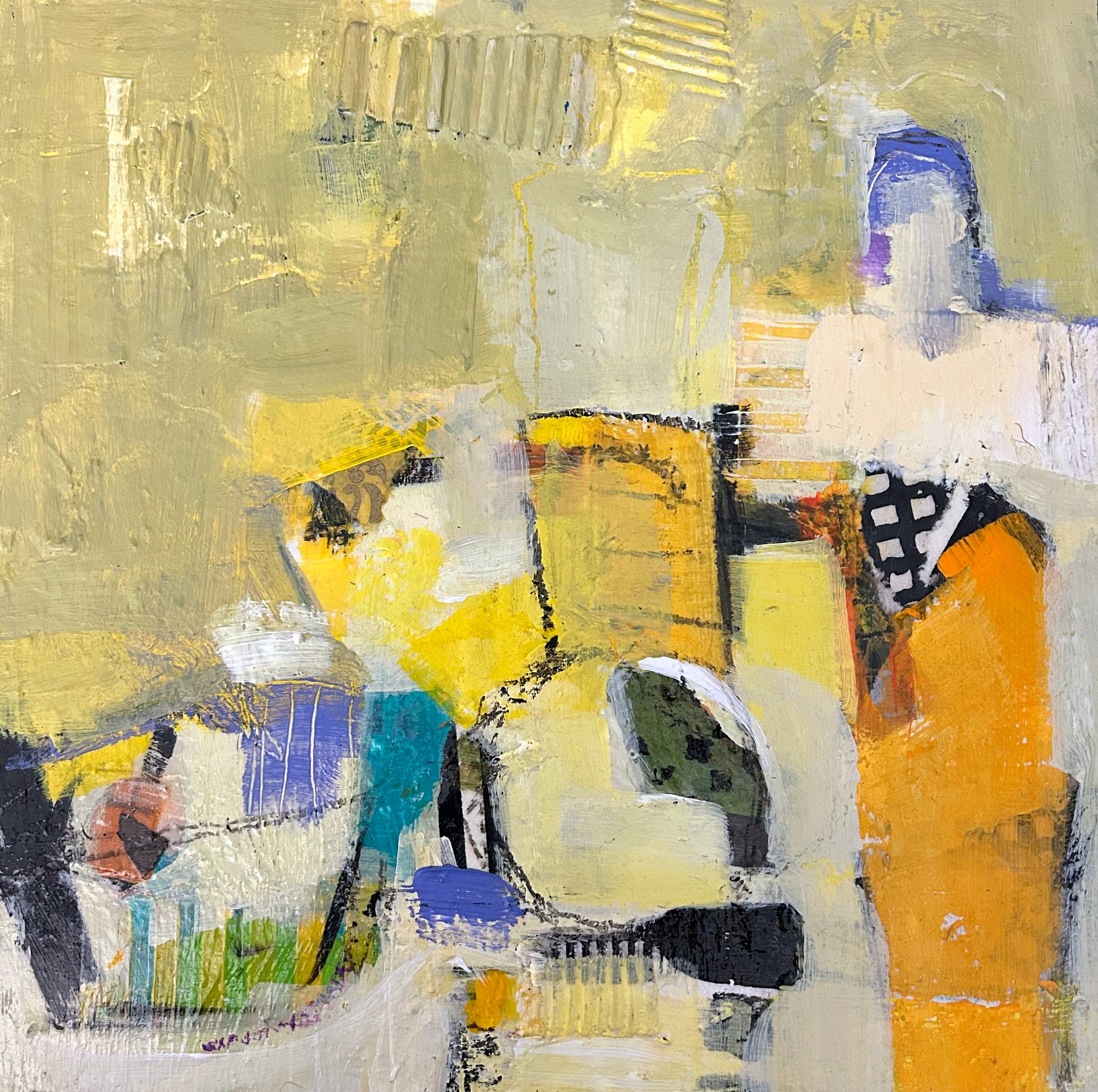 Wash Day, acrylic and collage on cradled birch panel, 10" x 10" x 5/8"